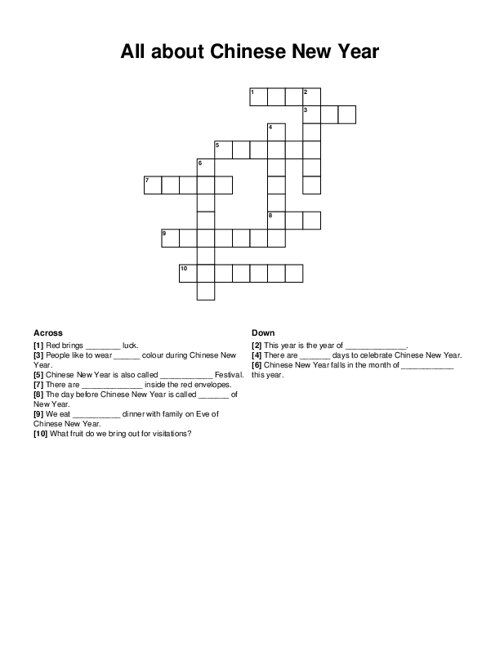 Are you looking for a fun and educational activity to celebrate Chinese New Year with your family or students? Look no further! We have a Chinese New Year crossword puzzle printable that is perfect for all ages. This engaging activity will not only help you learn more about this important holiday but also test your knowledge of Chinese New Year traditions and symbols.