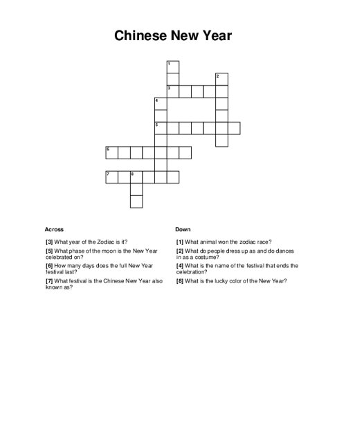 Chinese New Year Crossword Puzzle Printable