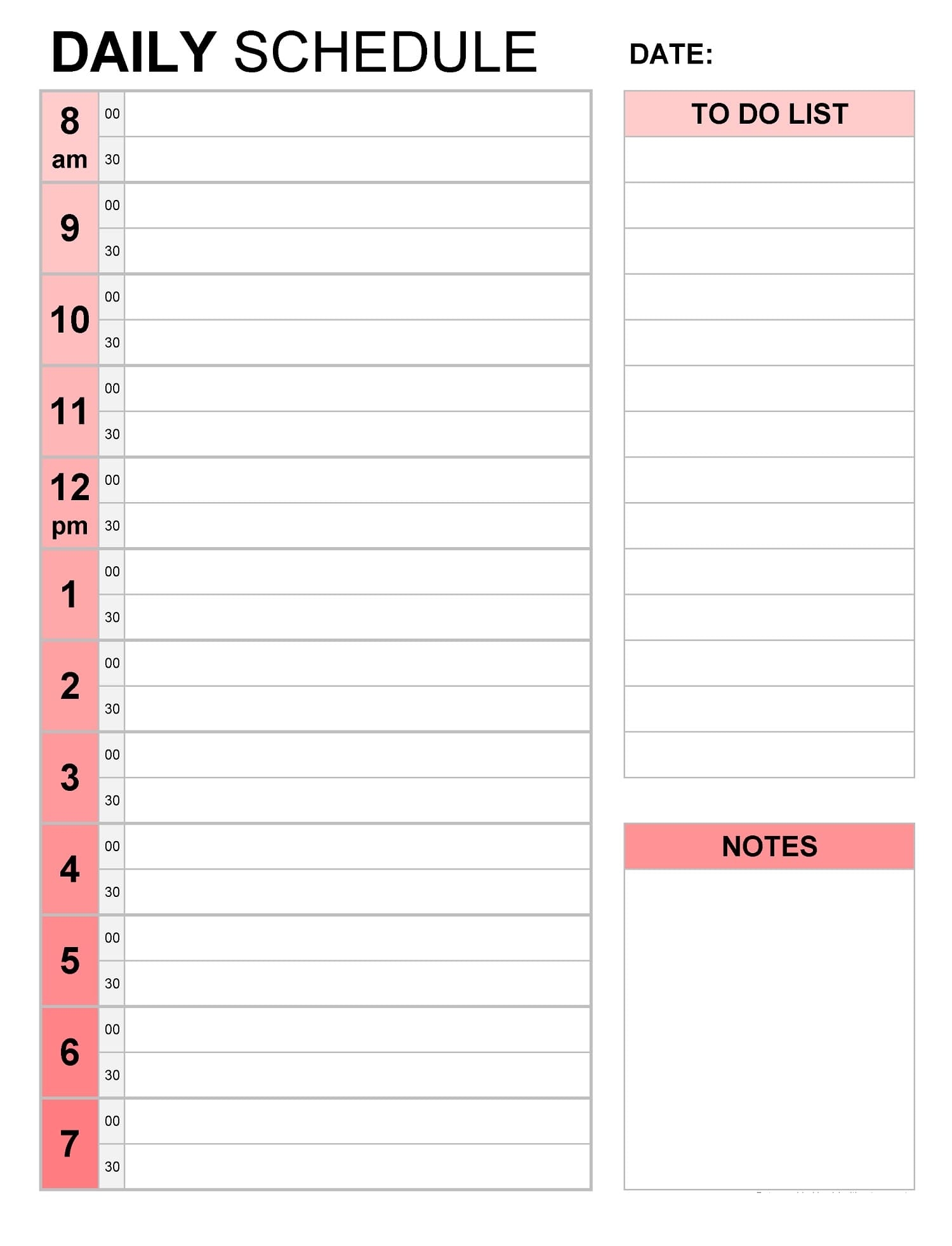 Printable Daily Schedule Template Free Free Download And Print For You