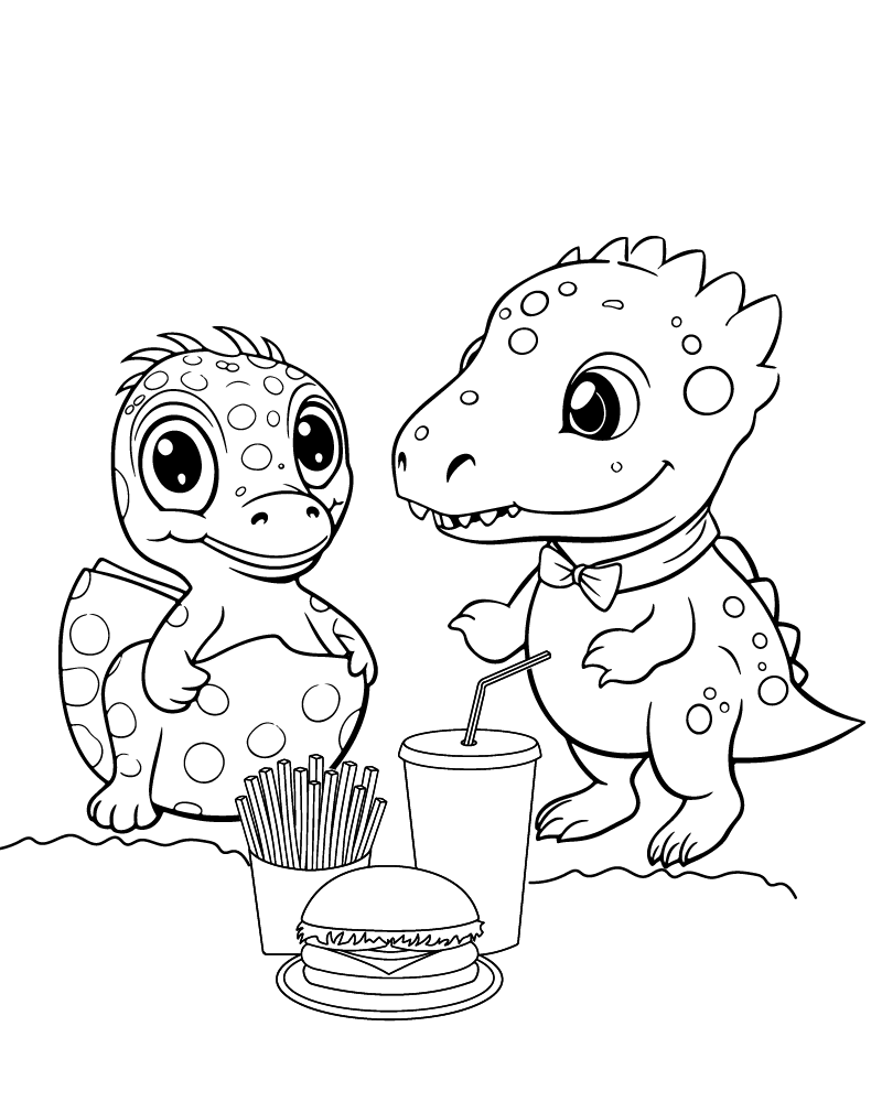 Baby Dino Having Lunch Coloring Page