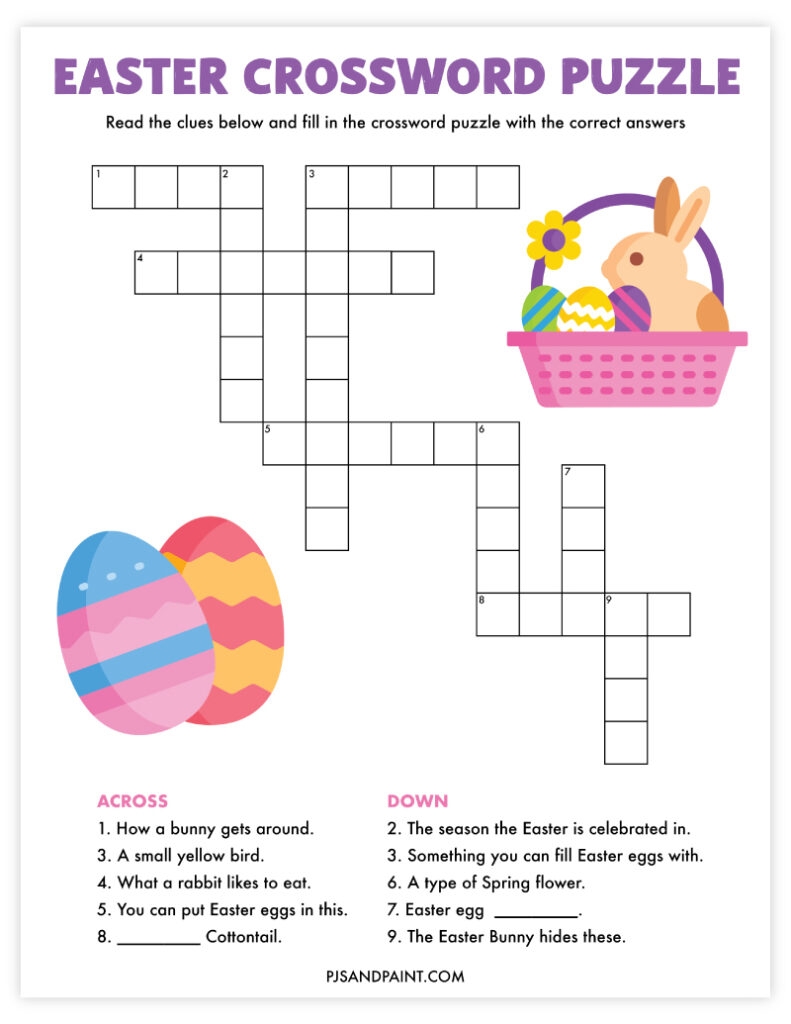 Free Printable Easter Crossword Puzzle Pjs And Paint