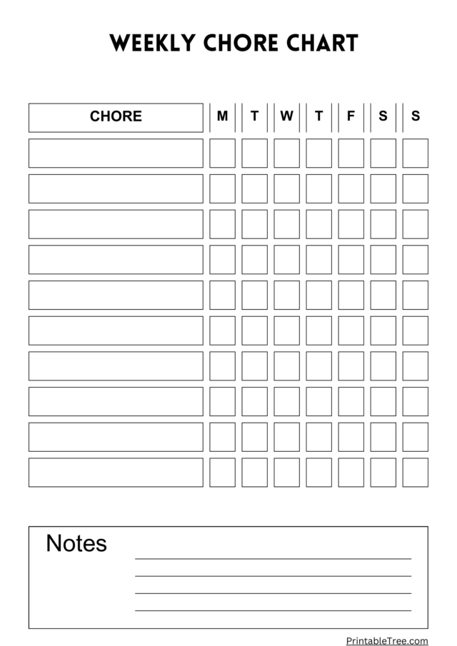 Whether you have kids who need a little extra motivation to pitch in around the house or you just want to stay organized, our chore chart template is the perfect solution. Simply download and print, then hang it up in a central location where everyone can see it.