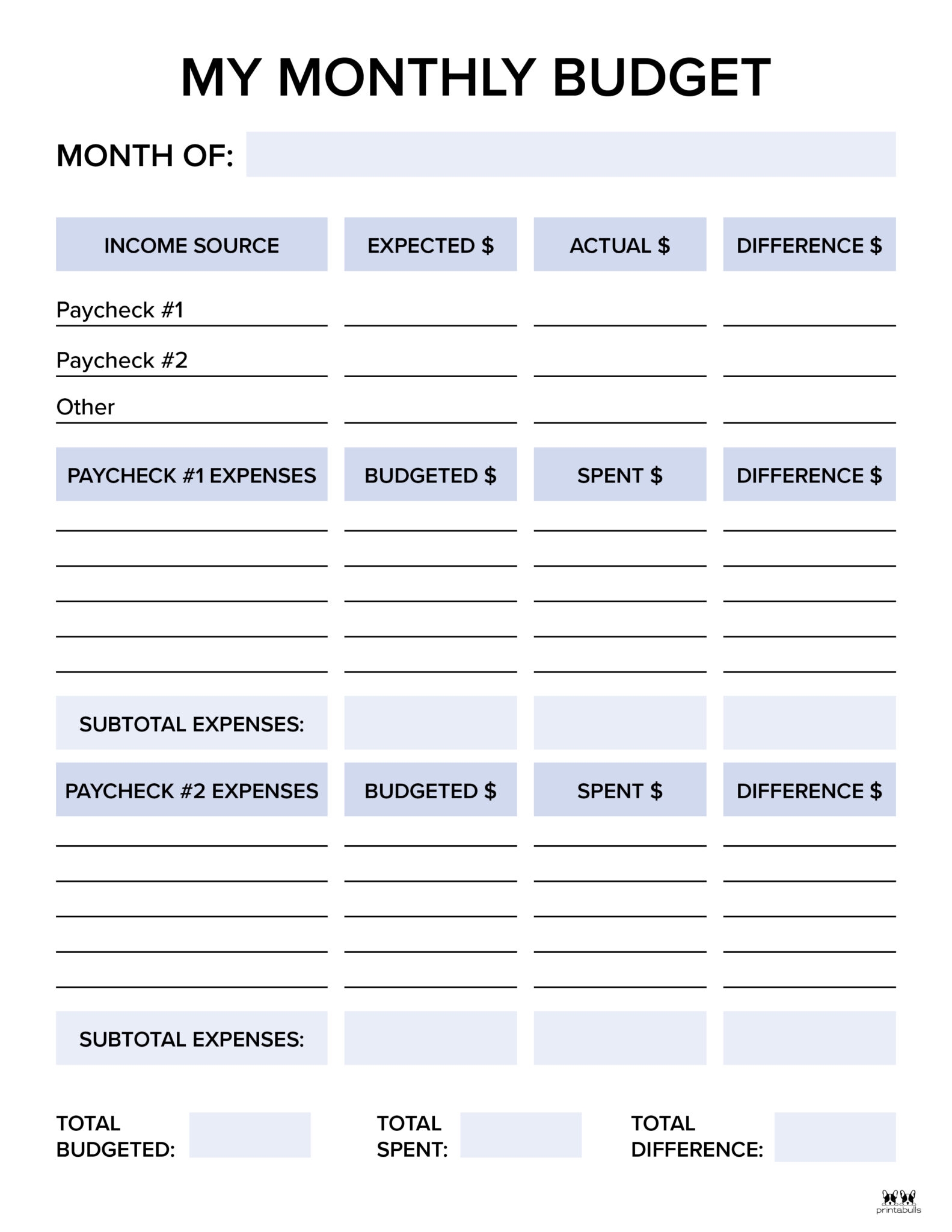 Monthly Budget Template Printable