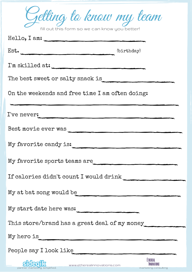 Coworkers Printable Getting To Know Your Employees Questionnaire