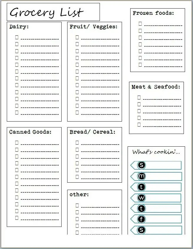 Free Printable Grocery List Templates