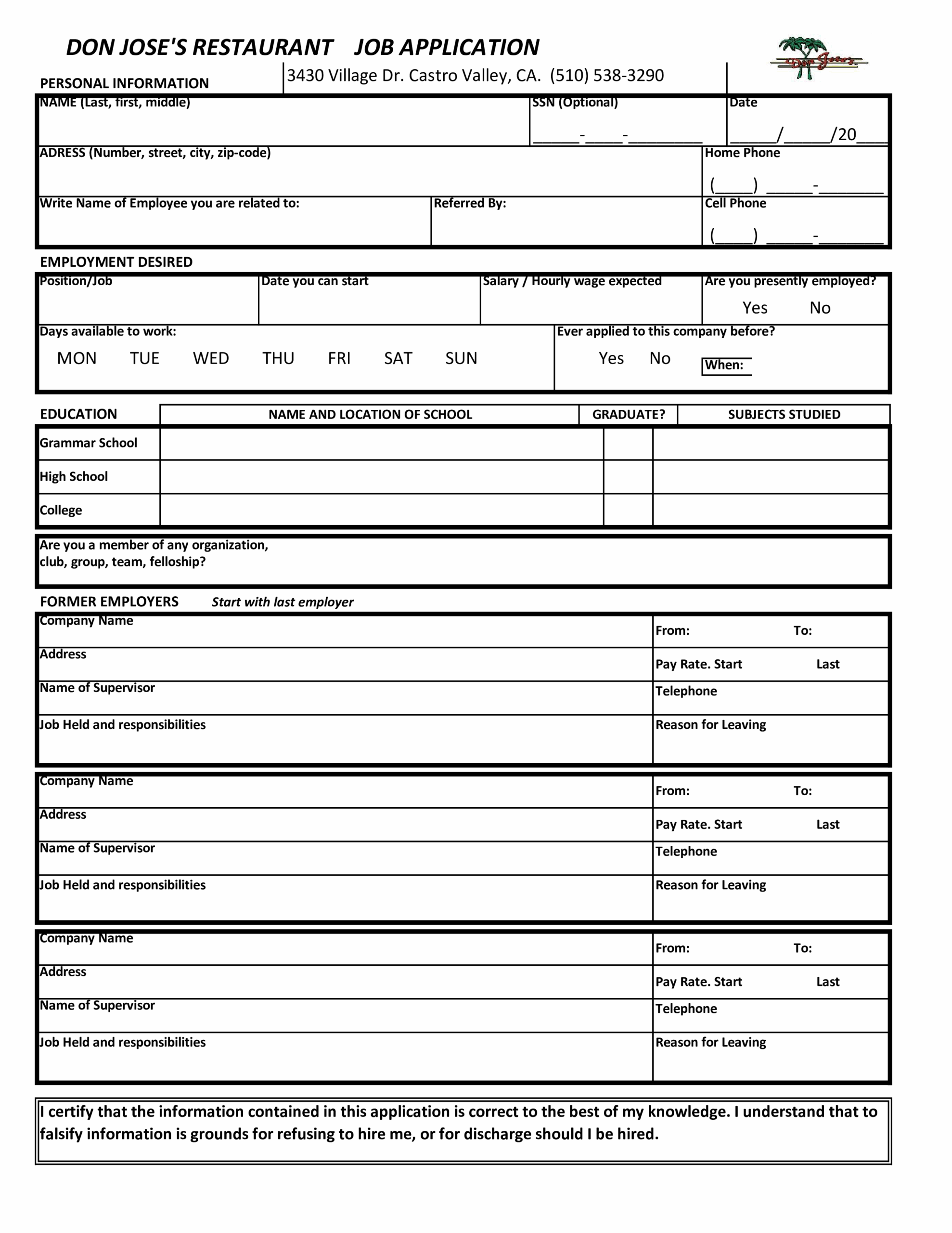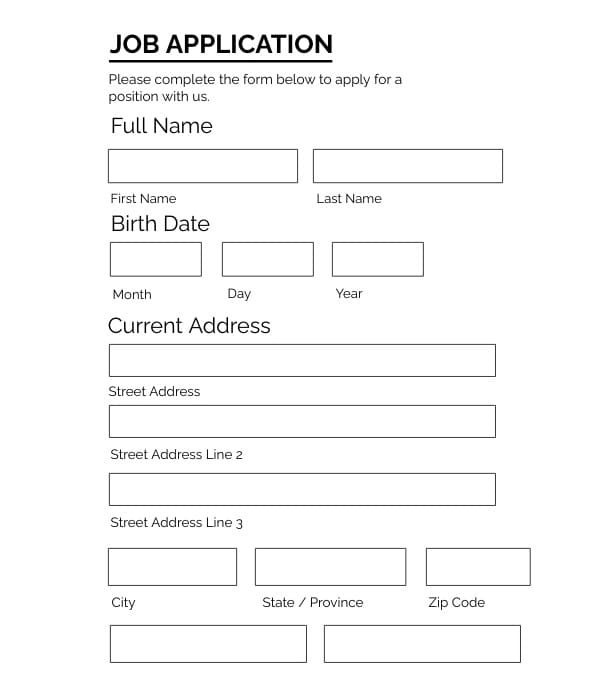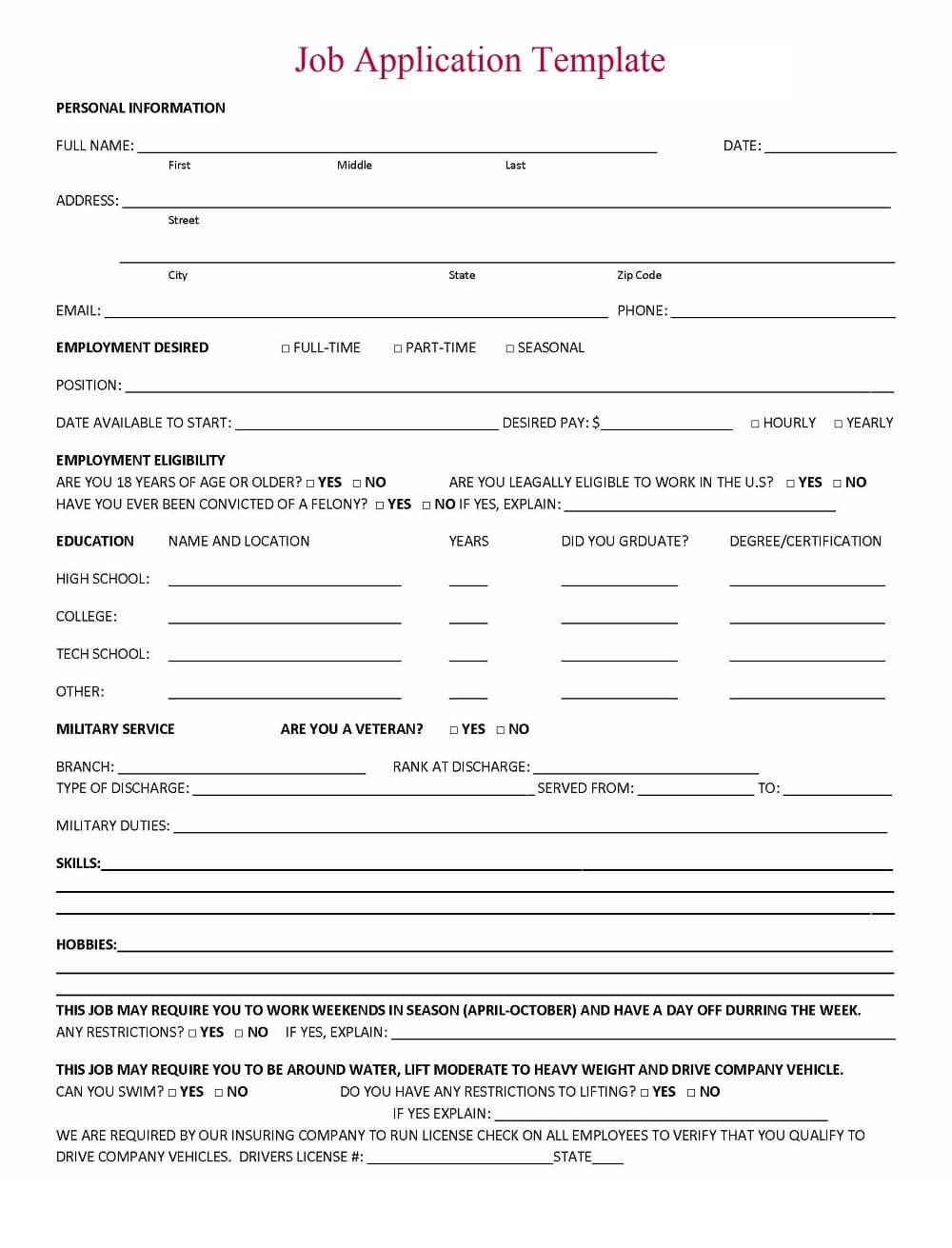 Free Printable Job Application Template