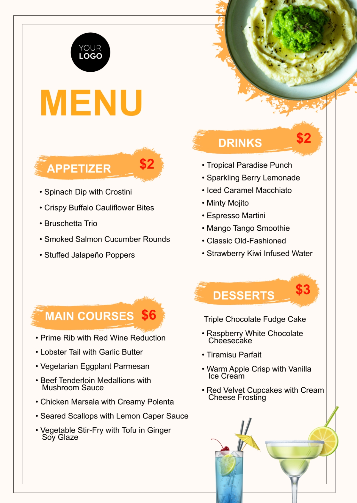 Free Printable Menu Template To Edit Online