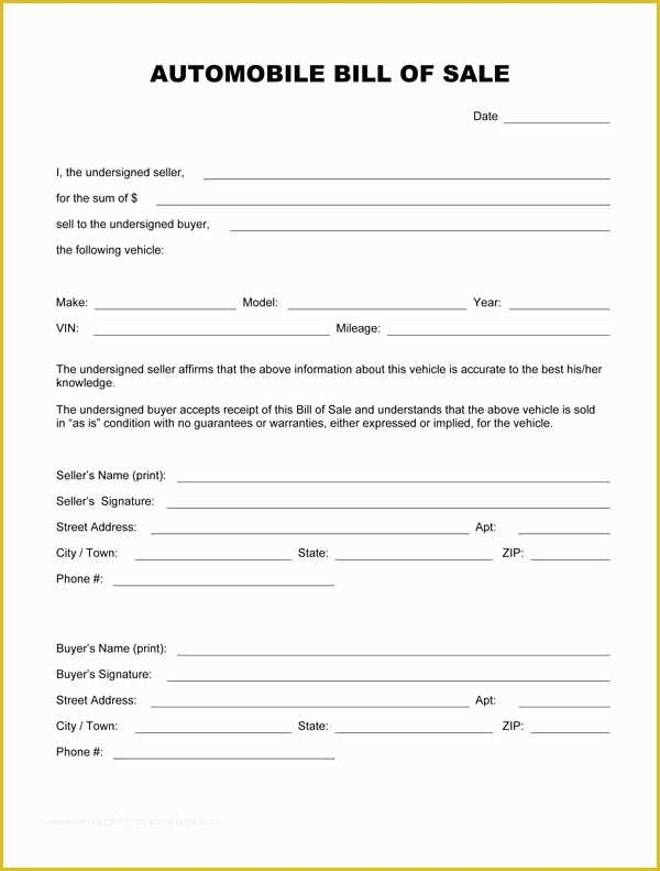 Free Vehicle Bill Of Sale Template Of Free Printable Free Car Bill Of