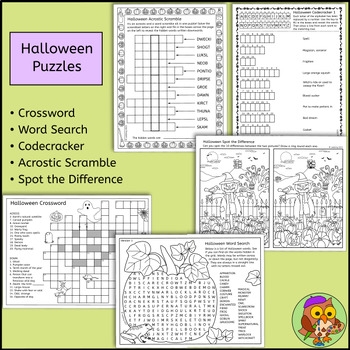 Halloween Vocabulary Puzzles Crosswords Word Searches Code Breakers Jumbles