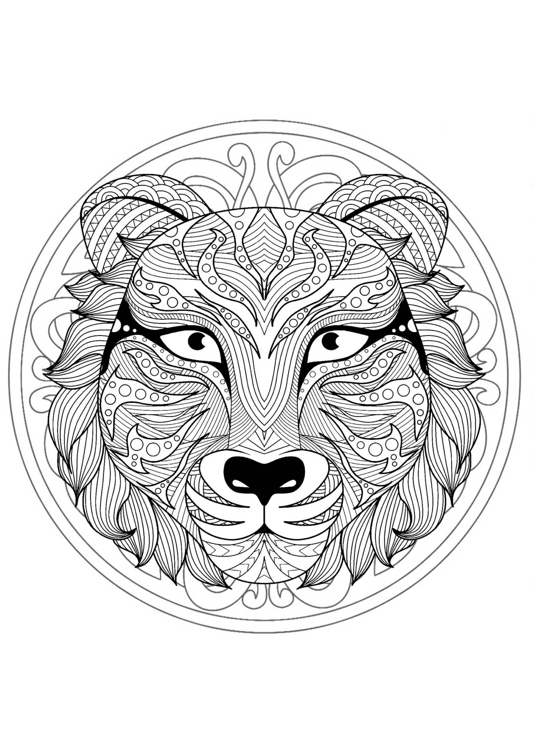 Tiger Head Version 1 Mandala Coloring Pages For Kids