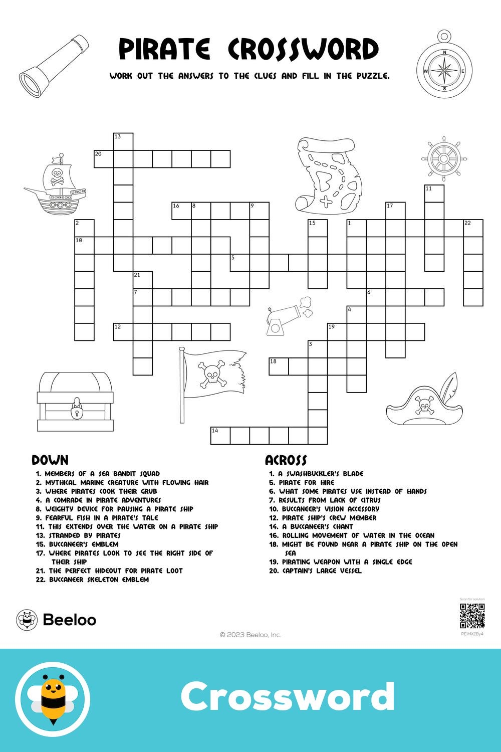 With clues ranging from famous pirate captains to popular pirate slang, this crossword puzzle is perfect for fans of all ages. You can print out multiple copies and challenge your friends to see who can solve it the fastest, or work together as a team to crack the code.