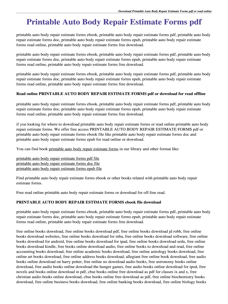 Download and Print Printable Free Auto Body Repair Estimate Template Forms Listed below