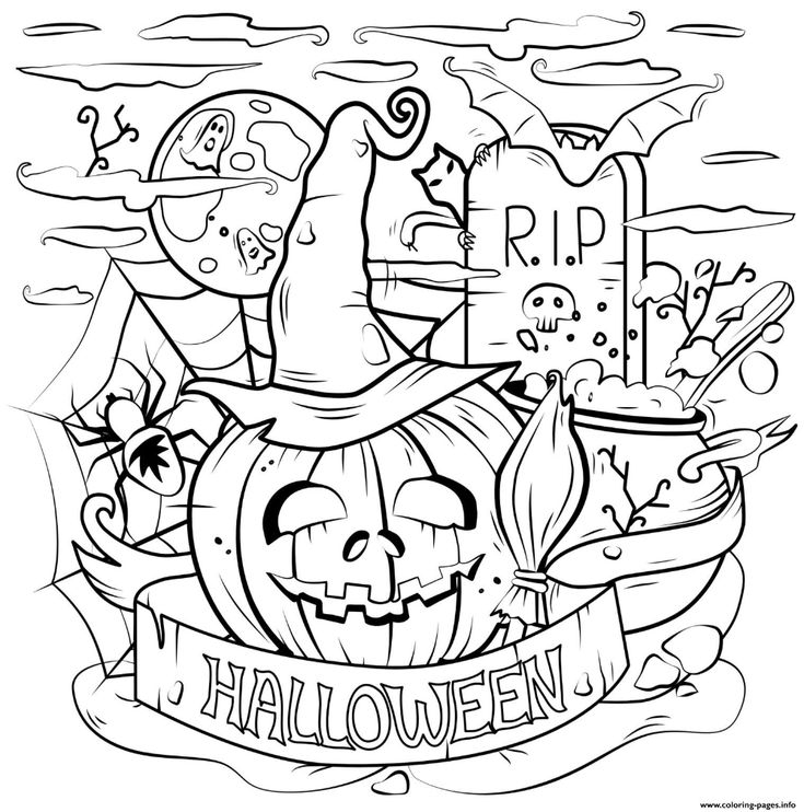 Download and Print Spooky Halloween Coloring Pages Listed below
