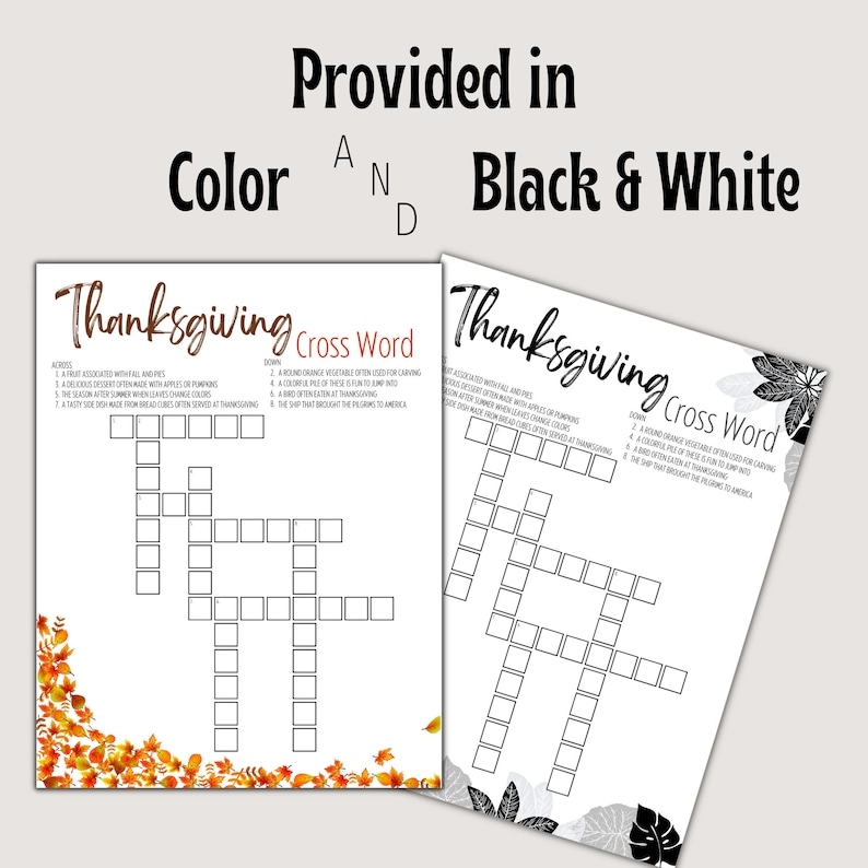 Thanksgiving themed Crossword Puzzle Printable Available In Color And Thanksgiving Themed Crossword Puzzle Printable Available In Color And