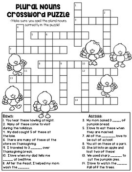 Plural Nouns Thanksgiving Crossword Puzzle By Cupcakes And RainbowsPlural Nouns Thanksgiving Crossword Puzzle By Cupcakes And Rainbows
